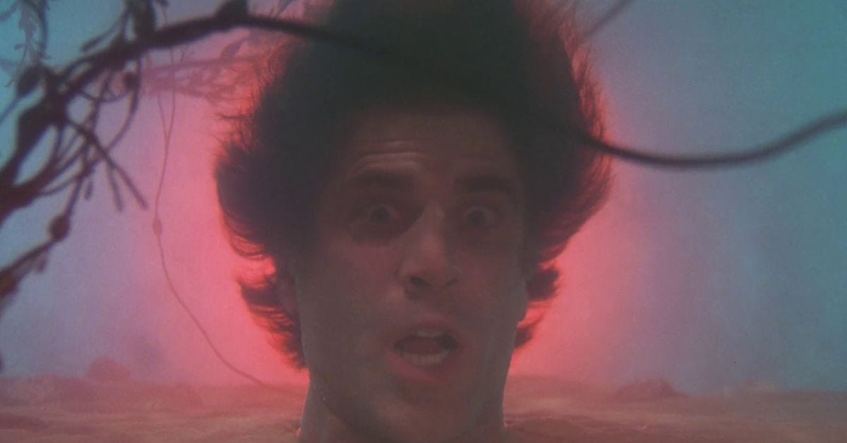 And my other memory is of my last shot in the movie. My character has been buried in the sand on the beach below tide line, so that the tide comes up and slowly drowns him. Leslie Nielsen kills him, and then he comes back as a waterlogged zombie thing. So what they’ve done is, they do the outside scene on the beach, but then they want the close-ups, so they make a little aquarium tank. I got in a wetsuit and climbed in, and somebody would reach down with an oxygen tank ventilator thingy, and I’d breathe, and then they’d take that out. And there was a yoke made out of… I don’t know, wood and fake sand, so it looked like my head was buried in the sand, underwater.